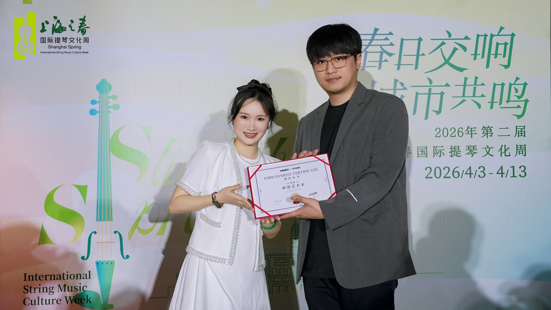 同时,哈尔滨师范大学音乐学院大提琴教师赵远兮;旅美小提琴演奏家、意大利克莱蒙纳国际弦乐比赛金奖获得者吴迪;上海爱乐乐团二提首席沈菲、小提副首席刘贺、大提琴演奏员陈聪、小提琴演奏员顾轩成;九棵树爱乐乐团大提琴首席周乐净、小提琴首席白渝森、二提琴首席郑瑞诺;以及青年大提琴演奏家周璞、青年小提琴演奏家胡鸿鸣等多位艺术家获聘一诺国际“新锐艺术家”。他们将以丰富的舞台经验和教学实践,共同助力弦乐教研与艺术传播。